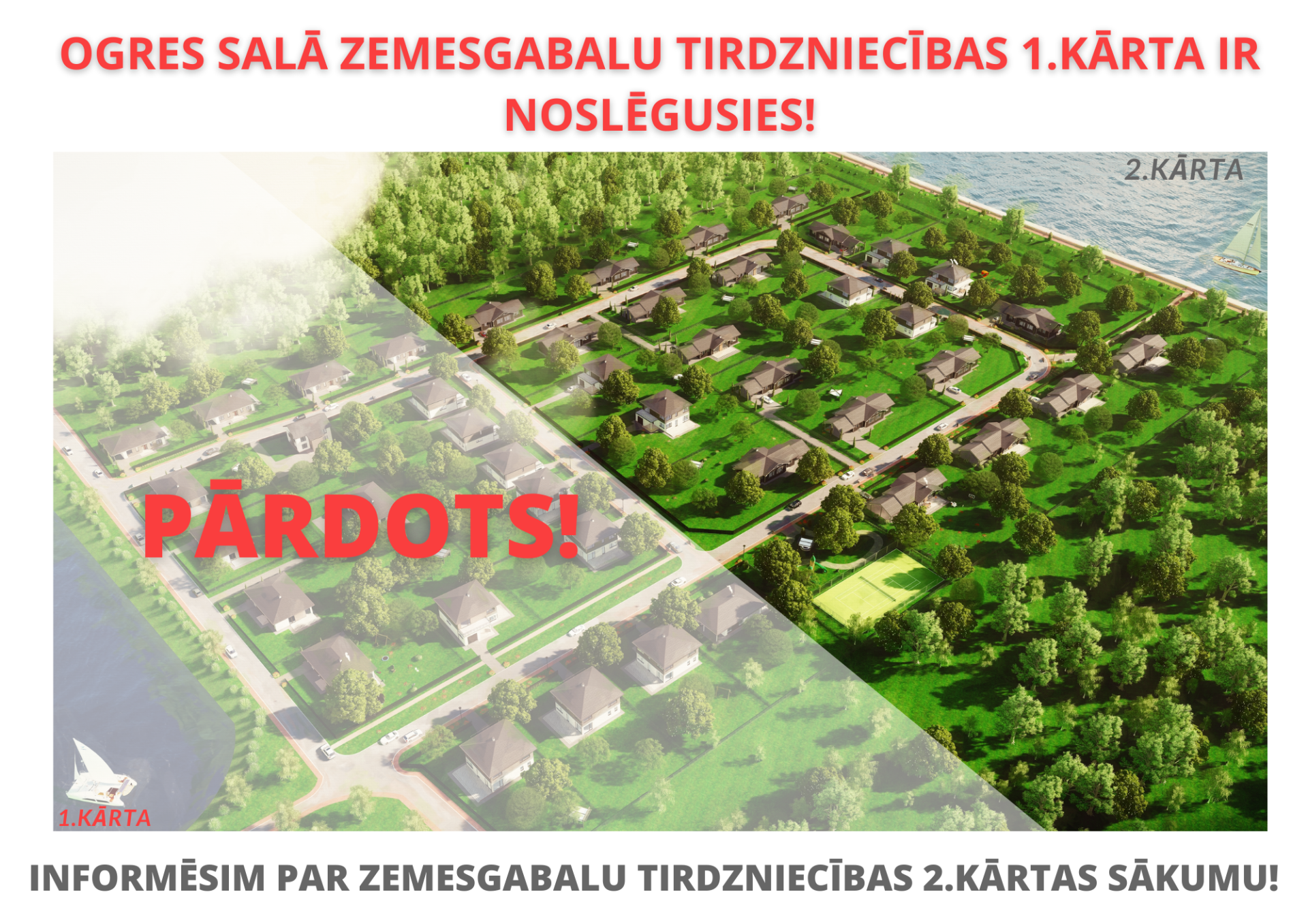 Ogres salā zemesgabalu tirdzniecības 1. kārta ir veiksmīgi noslēgusies! Esam priecīgi, ka mūsu klienti izvēlējušies šo vietu savām jaunajām mājām.